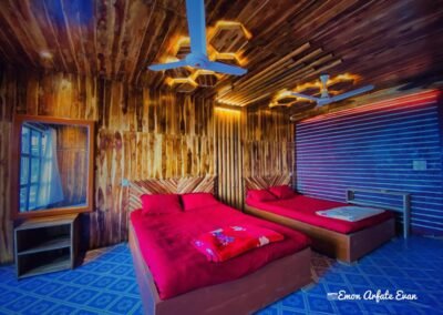 অপ্সরা ইকো রিসোর্ট, সাজেক, একটি সুন্দর প্রাকৃতিক পরিবেশে অবস্থিত, যেখানে আপনি পৃথিবীর অন্যতম শুদ্ধ ও শান্তিপূর্ণ পরিবেশ উপভোগ করতে পারবেন। রিসোর্টটি সাজেকের বিশাল পাহাড়ি অঞ্চলে সজ্জিত, যা একে দৃষ্টিনন্দন প্রাকৃতিক সৌন্দর্যে ভরপুর করেছে। এখানকার মনোমুগ্ধকর ভিউ, সবুজ গাছপালা এবং ঠান্ডা বাতাস আপনাকে প্রকৃতির সাথে একাত্ম হতে সহায়তা করবে। সাজেকের অপূর্ব সৌন্দর্য দেখতে এখানে আসা পর্যটকদের জন্য অপ্সরা ইকো রিসোর্ট একটি আদর্শ স্থান। প্রাকৃতিক সৌন্দর্য, শান্তিপূর্ণ পরিবেশ এবং উন্নত সুবিধা আপনাকে একটি স্মরণীয় অভিজ্ঞতা প্রদান করবে।